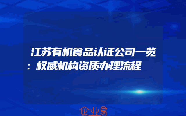 - 江苏有机食品认证公司一览:权威机构资质办理流程