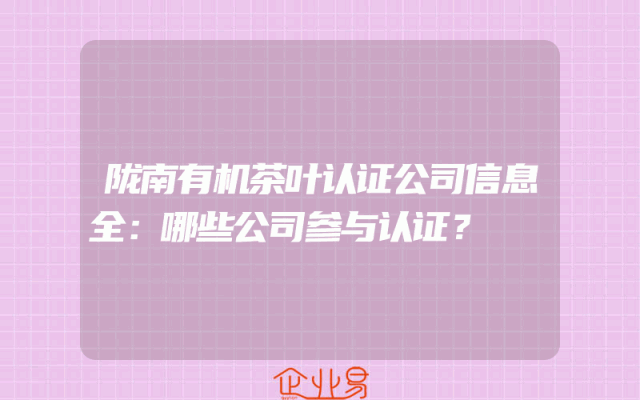 - 陇南有机茶叶认证公司信息全:哪些公司参与认证?