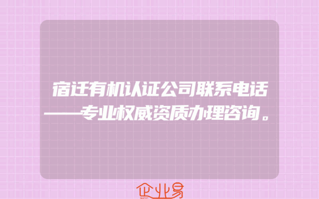 - 宿迁有机认证公司联系电话:专业权威资质办理咨询引言随着市场竞争的加剧,企业对各类资质的需求愈发强烈。如何高效、便捷地获取所需资质,成为了众多企业发展的关键所在。宿迁有机认证公司作为一家专业从事资质办理
