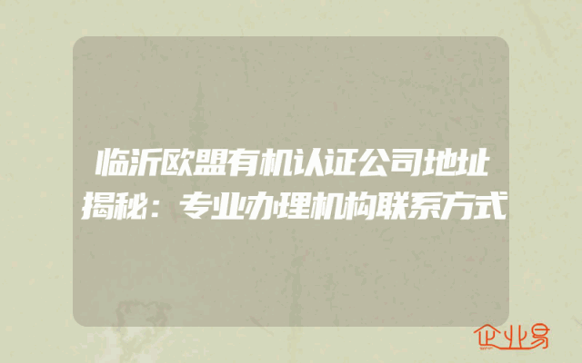 - 临沂欧盟有机认证公司地址揭秘:专业办理机构联系方式