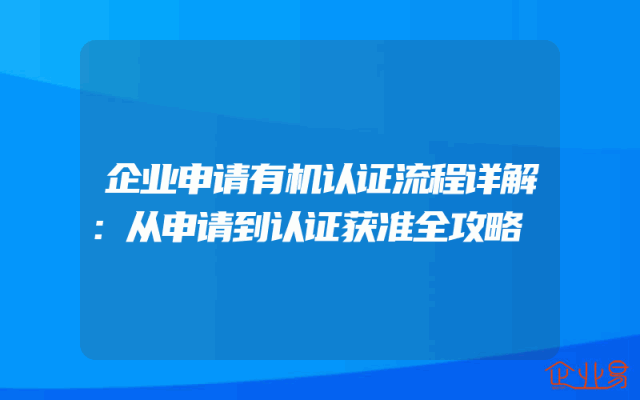 - 企业申请有机认证流程详解:从申请到认证获准全攻略