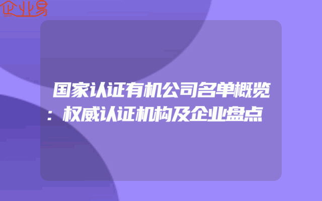 - 国家认证有机公司名单概览:权威认证机构及企业盘点