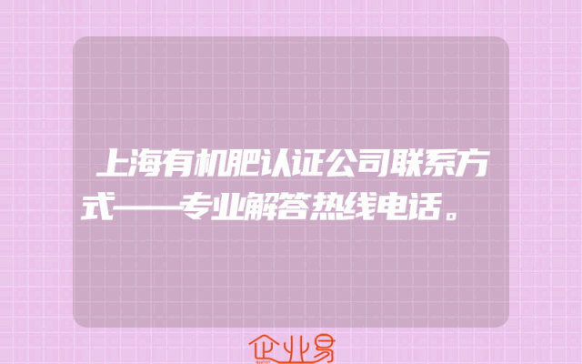 - 上海有机肥认证公司联系方式——专业解答热线电话。