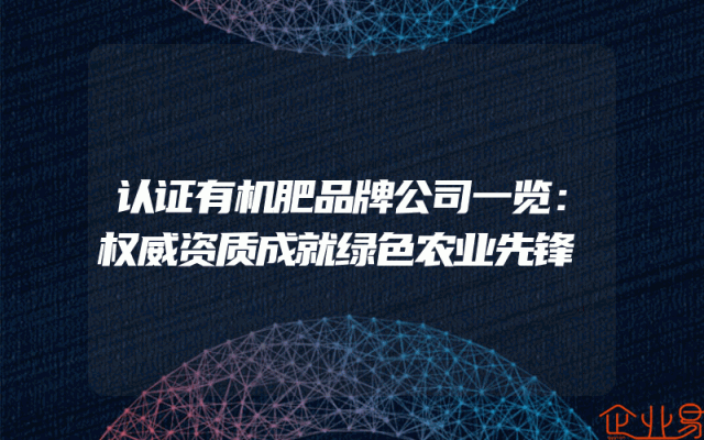 - 认证有机肥品牌公司一览:权威资质成就绿色农业先锋