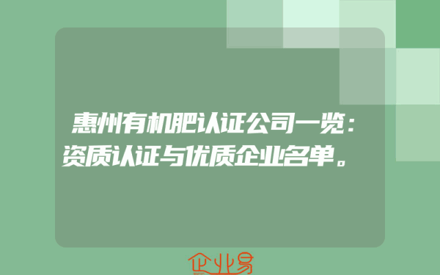- 惠州有机肥认证公司一览:资质认证与优质企业名单。