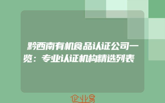 - 黔西南有机食品认证公司一览:专业认证机构精选列表