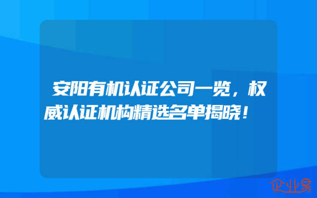- 安阳有机认证公司一览,权威认证机构精选名单揭晓!