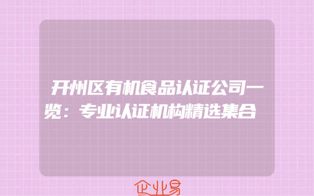 - 开州区有机食品认证公司一览:专业认证机构精选集合