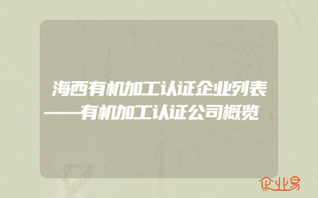 - 海西有机加工认证企业列表——有机加工认证公司概览