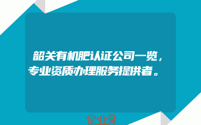 - 韶关有机肥认证公司一览,专业资质办理服务提供者。