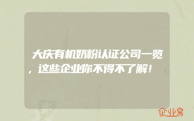 - 大庆有机奶粉认证公司一览,这些企业你不得不了解!