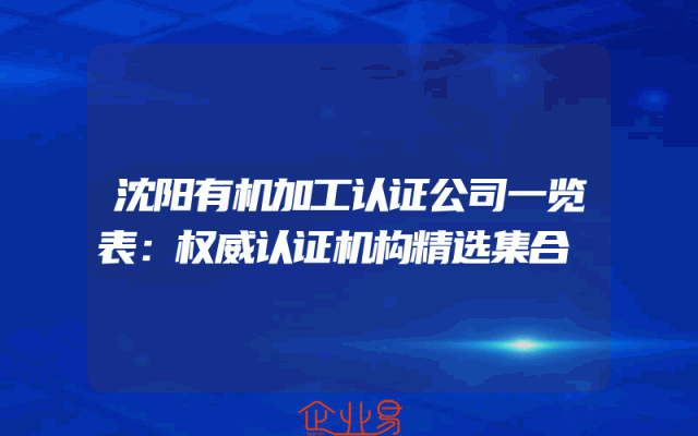 - 沈阳有机加工认证公司一览表:权威认证机构精选集合