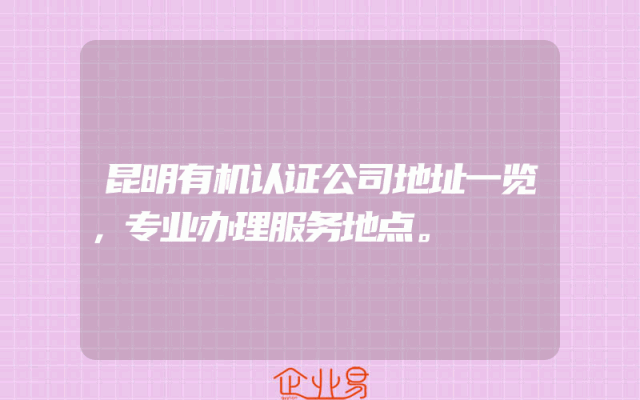 - 昆明有机认证公司地址一览,专业办理服务地点。