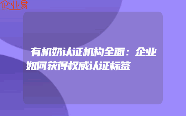 - 有机奶认证机构全面:企业如何获得权威认证标签