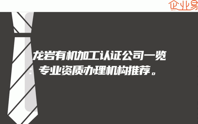 - 龙岩有机加工认证公司一览:专业资质办理机构推荐。