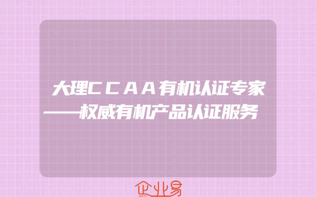 - 大理CCAA有机认证专家——权威有机产品认证服务