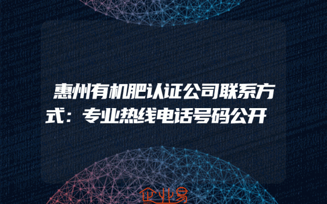 - 惠州有机肥认证公司联系方式:专业热线电话号码公开