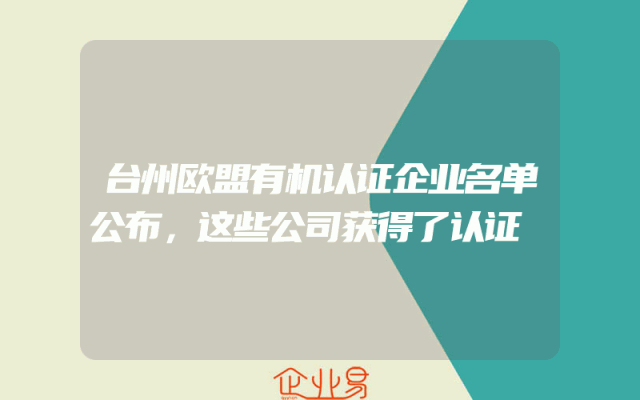 - 台州欧盟有机认证企业名单公布,这些公司获得了认证