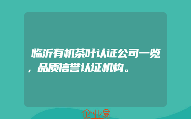 - 临沂有机茶叶认证公司一览,品质信誉认证机构。