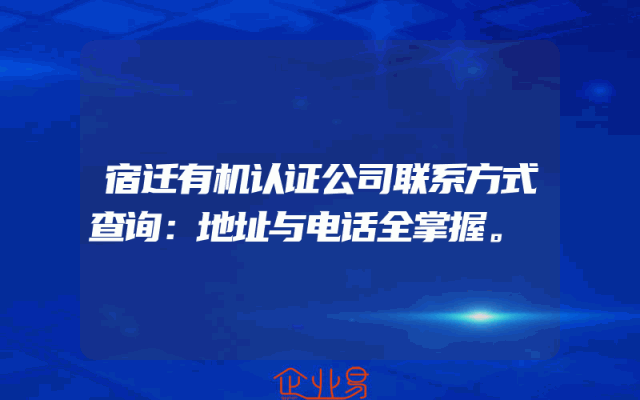 - 宿迁有机认证公司联系方式查询:地址与电话全掌握。