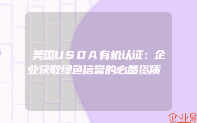 - 美国USDA有机认证:企业获取绿色信誉的必备资质