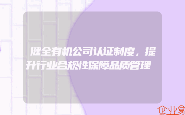 - 健全有机公司认证制度,提升行业合规性保障品质管理