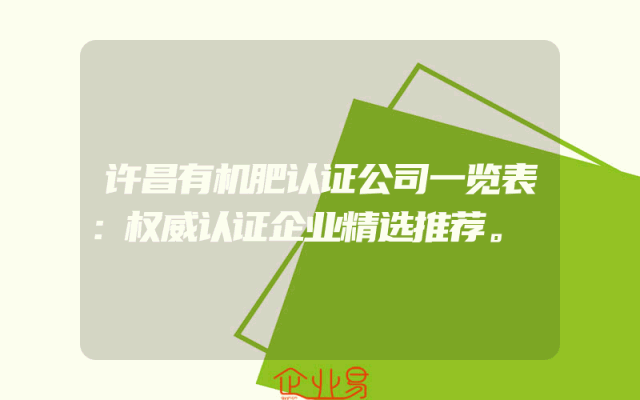 - 许昌有机肥认证公司一览表:权威认证企业精选推荐。