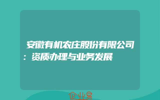 - 安徽有机农庄股份有限公司:资质办理与业务发展