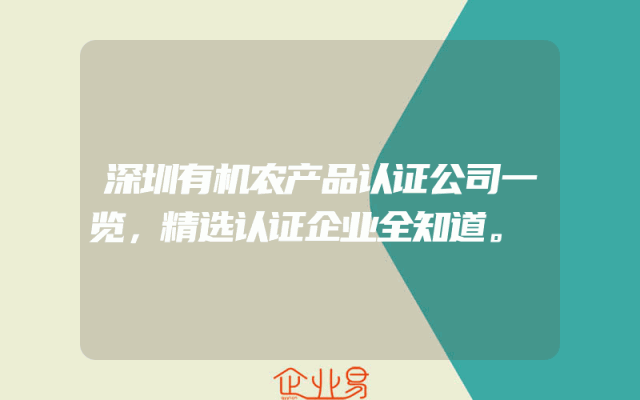 - 深圳有机农产品认证公司一览,精选认证企业全知道。