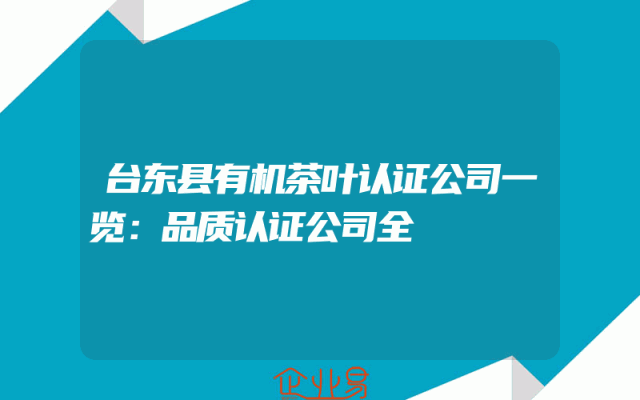 - 台东县有机茶叶认证公司一览:品质认证公司全