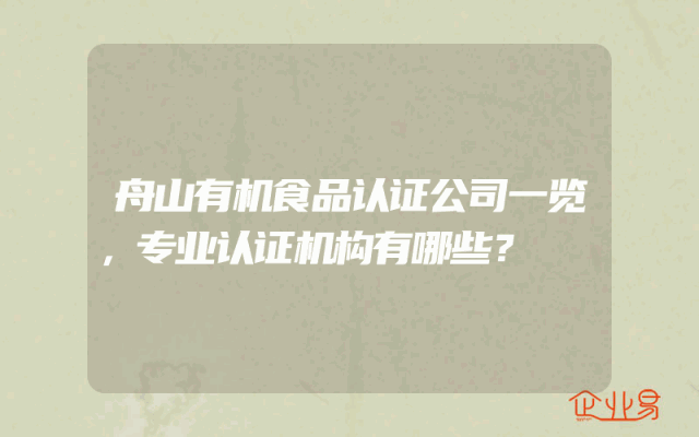 - 舟山有机食品认证公司一览,专业认证机构有哪些?