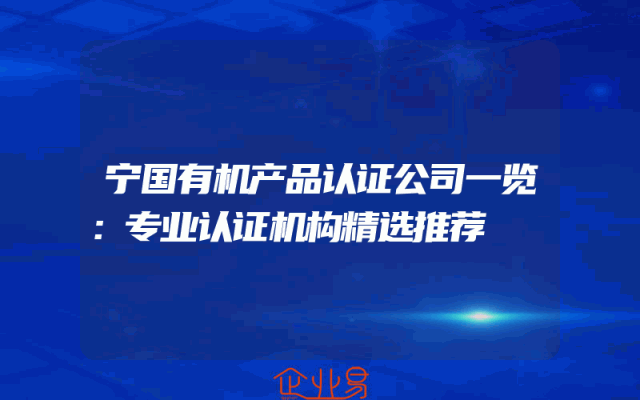 - 宁国有机产品认证公司一览:专业认证机构精选推荐