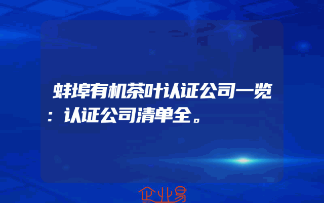 - 蚌埠有机茶叶认证公司一览:认证公司清单全。