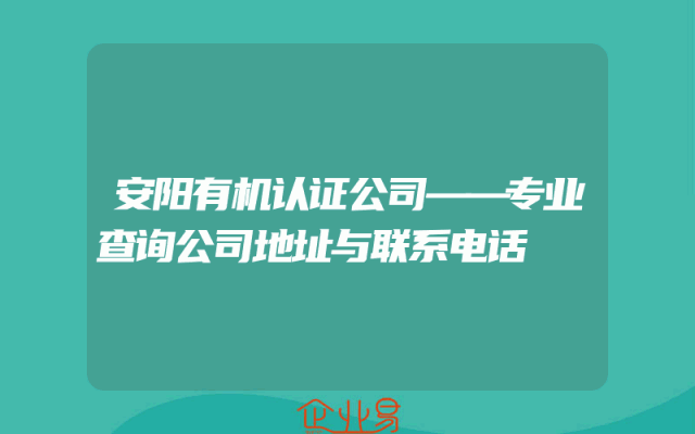 - 安阳有机认证公司——专业查询公司地址与联系电话