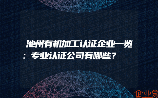 - 池州有机加工认证企业一览:专业认证公司有哪些?