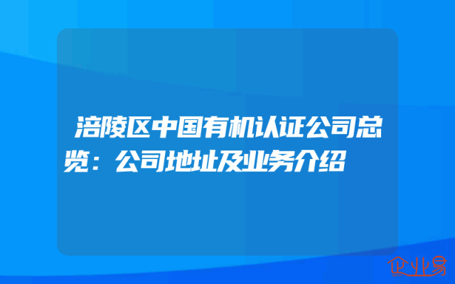 - 涪陵区中国有机认证公司总览:公司地址及业务介绍