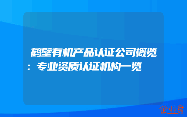 - 鹤壁有机产品认证公司概览:专业资质认证机构一览