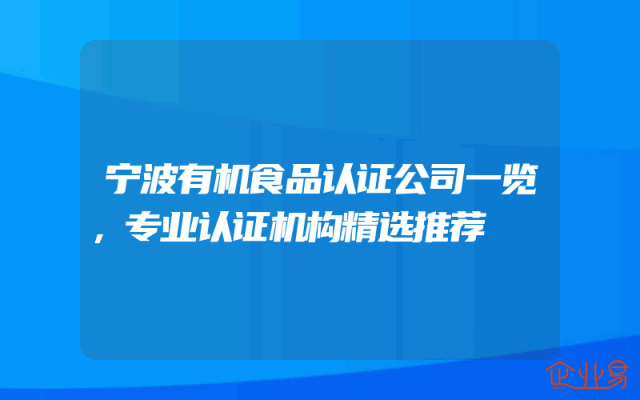 - 宁波有机食品认证公司一览,专业认证机构精选推荐