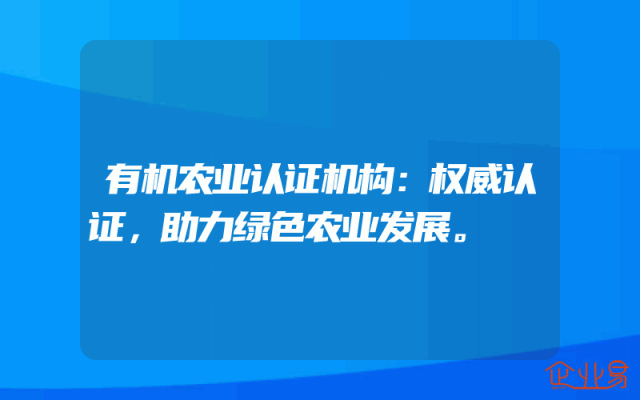 - 有机农业认证机构:权威认证,助力绿色农业发展。