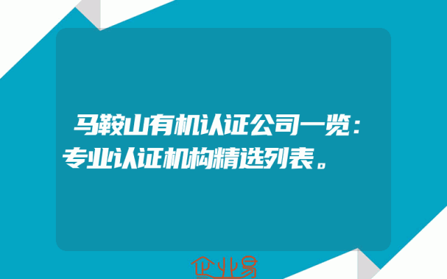 - 马鞍山有机认证公司一览:专业认证机构精选列表。