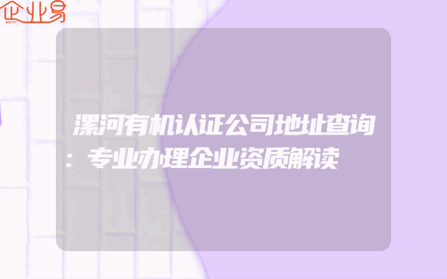 - 漯河有机认证公司地址查询:专业办理企业资质解读