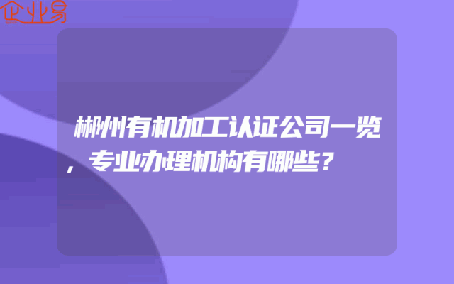 - 郴州有机加工认证公司一览,专业办理机构有哪些?