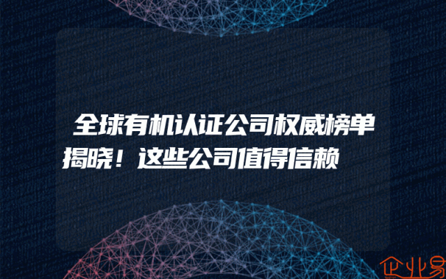 - 全球有机认证公司权威榜单揭晓!这些公司值得信赖