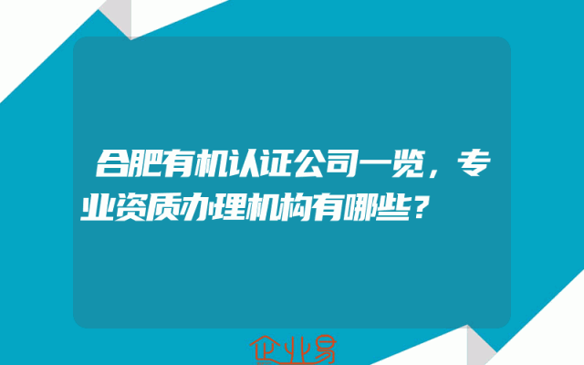 - 合肥有机认证公司一览,专业资质办理机构有哪些?