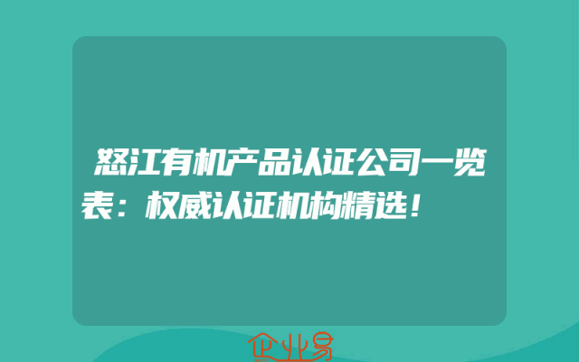 - 怒江有机产品认证公司一览表:权威认证机构精选!