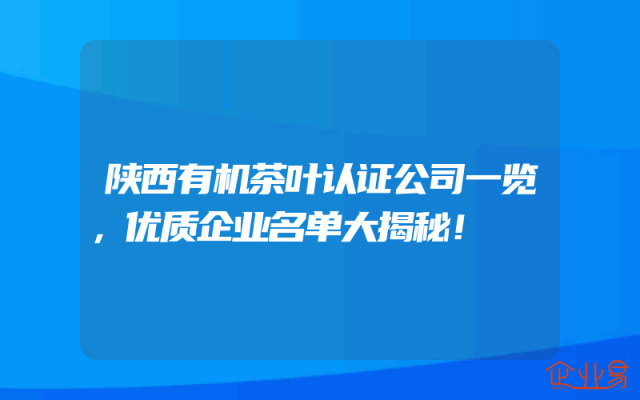 - 陕西有机茶叶认证公司一览,优质企业名单大揭秘!