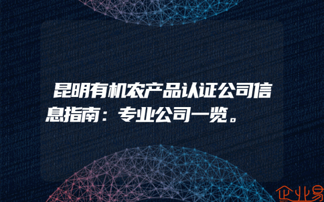 - 昆明有机农产品认证公司信息指南:专业公司一览。