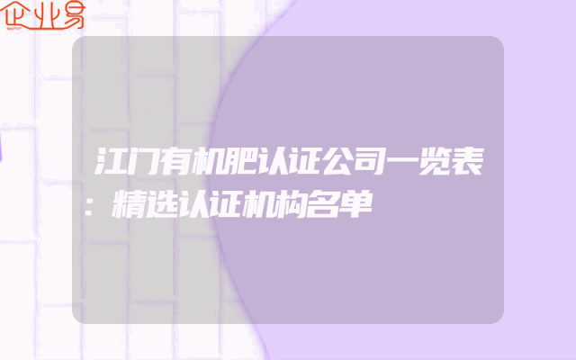 - 江门有机肥认证公司一览表:精选认证机构名单