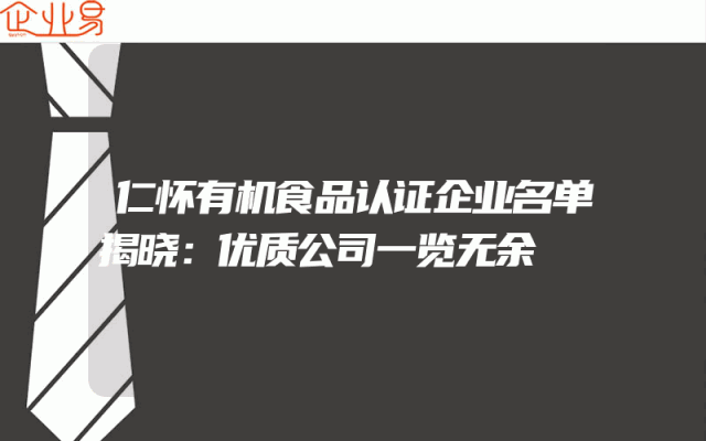 - 仁怀有机食品认证企业名单揭晓:优质公司一览无余
