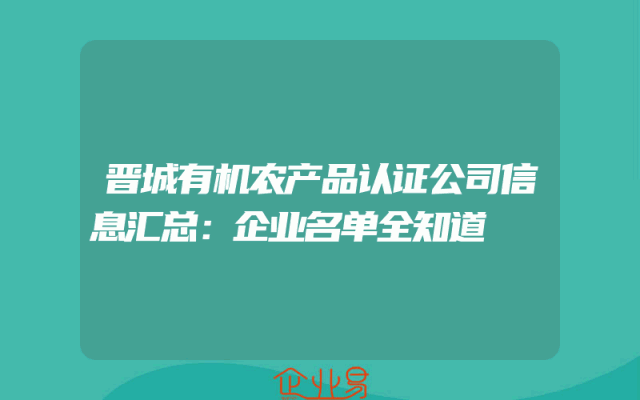 - 晋城有机农产品认证公司信息汇总:企业名单全知道